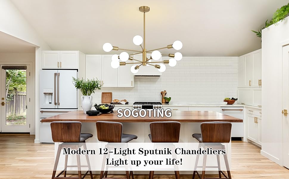SOGOTING 12-Light Modern Gold Sputnik Chandelier