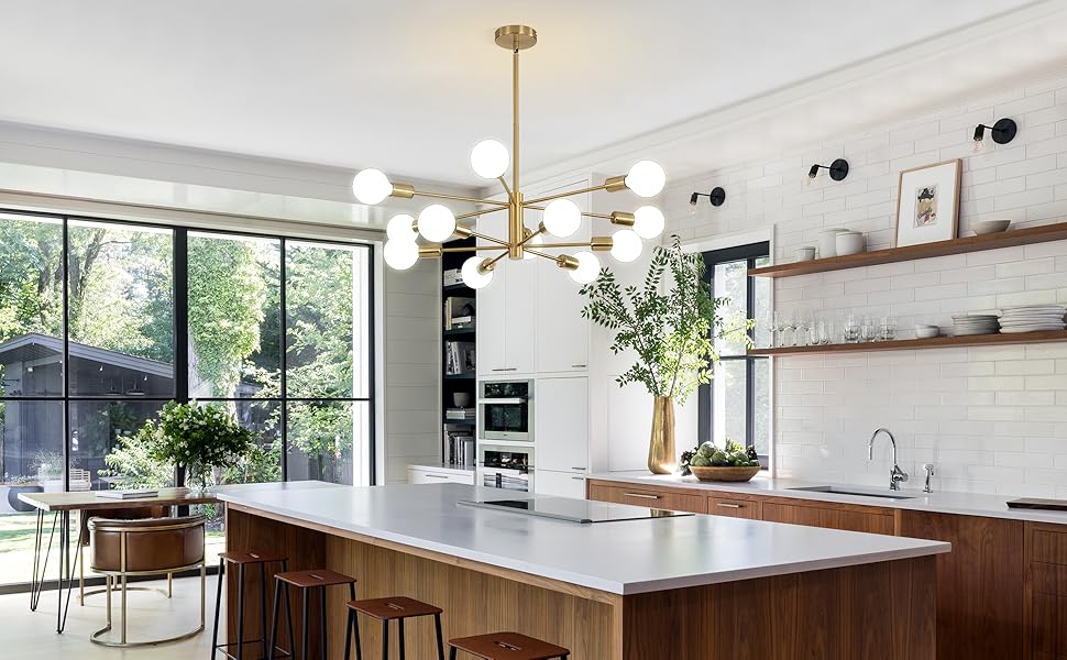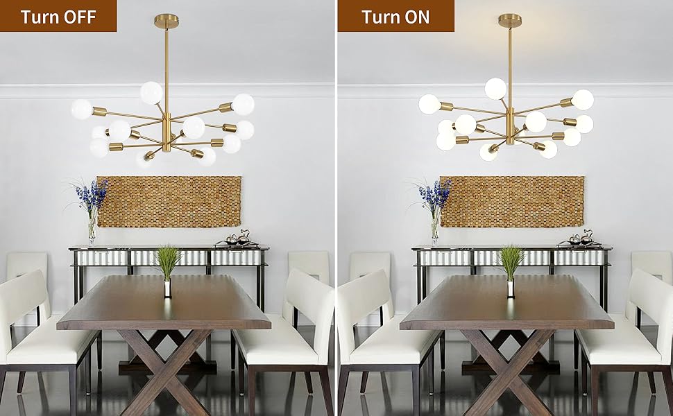 Gold Finish Mid-Century Design: The sputnik chandelier is made of high-quality materials, durable and not easy to rust. The gold finish not only enhances the overall aesthetics, but also gives the space a luxurious and elegant atmosphere. Perfect for dining rooms, bedrooms, staircase entrances and more