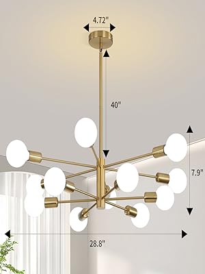 12-Light Modern Sputnik Chandelier, Mid Century Gold Chandelier Ceiling Light Fixture Height Adjustable Modern Chandeliers for Dinging Room, Living Room, Bedroom and Foyer
