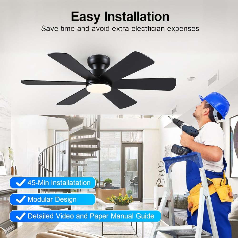 Easy and Embedded Installation with Video Guide: The embedded design of this ceiling fan with light is aesthetically pleasing and easy to assemble. By watching our video guide and reading the paper manual, one can finish the installation in 45 minutes