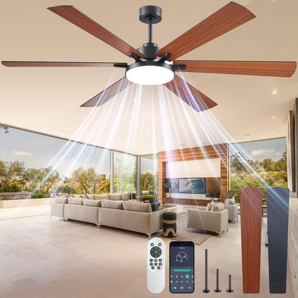 72 Inch Outdoor Ceiling Fan with Light: This oversized outdoor fan comes with 6″,10″, and 24″ down rods, making it adaptable to various ceiling heights (16–30 inches) — ideal for both cozy low ceilings and grand, high spaces.Equipped with 6 aerodynamic blades, this fan efficiently circulates air across large areas, eliminating the need for multiple smaller fans while delivering powerful, even airflow,making it a cost-effective yet stylish upgrade for living rooms, garages, barns, covered patios,Gazebo, Industrial and Shop use.