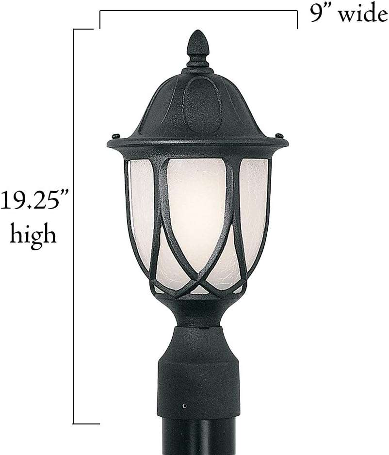 Add distinctive charm and bright, inviting illumination to outdoor areas of your home with the Capella Post Lantern! Constructed with strong and sturdy cast aluminum, our outdoor pole light fixtures are built to withstand harsh outdoor weather conditions and provide years of reliability. The sleek satin crackle glass shade of our modern post lantern provides maximum illumination to effectively light up your yard and provide a charming way to invite your house guests. Our Capella post lantern is easy to install on posts in your driveway, front yard, backyard, or even to flank walkways in outdoor areas. Our outdoor post lights measure 9 W x 9 D x 19.25 H in inches, and uses 1 medium base 100 light bulb (Bulbs not included). Outdoor post lamps are cULus certified for use in wet outdoor areas and backed by a 1 year warranty.