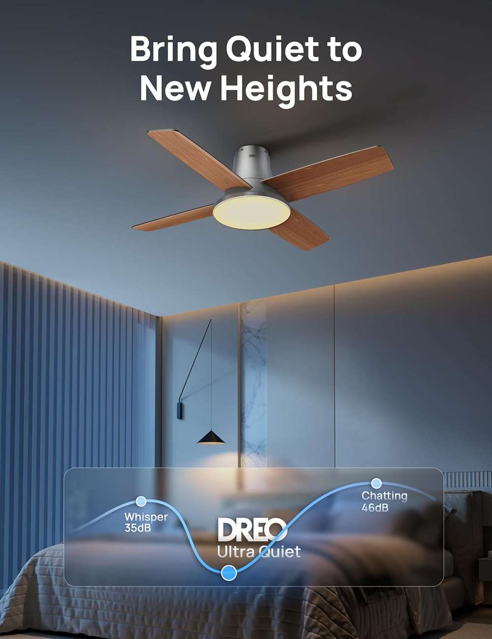 Quiet Performance: DREO’s brushless DC motor ensures noise levels are less than a whisper, providing smooth and efficient operation. This makes it the perfect ceiling fan for bedrooms, or homes with babies.