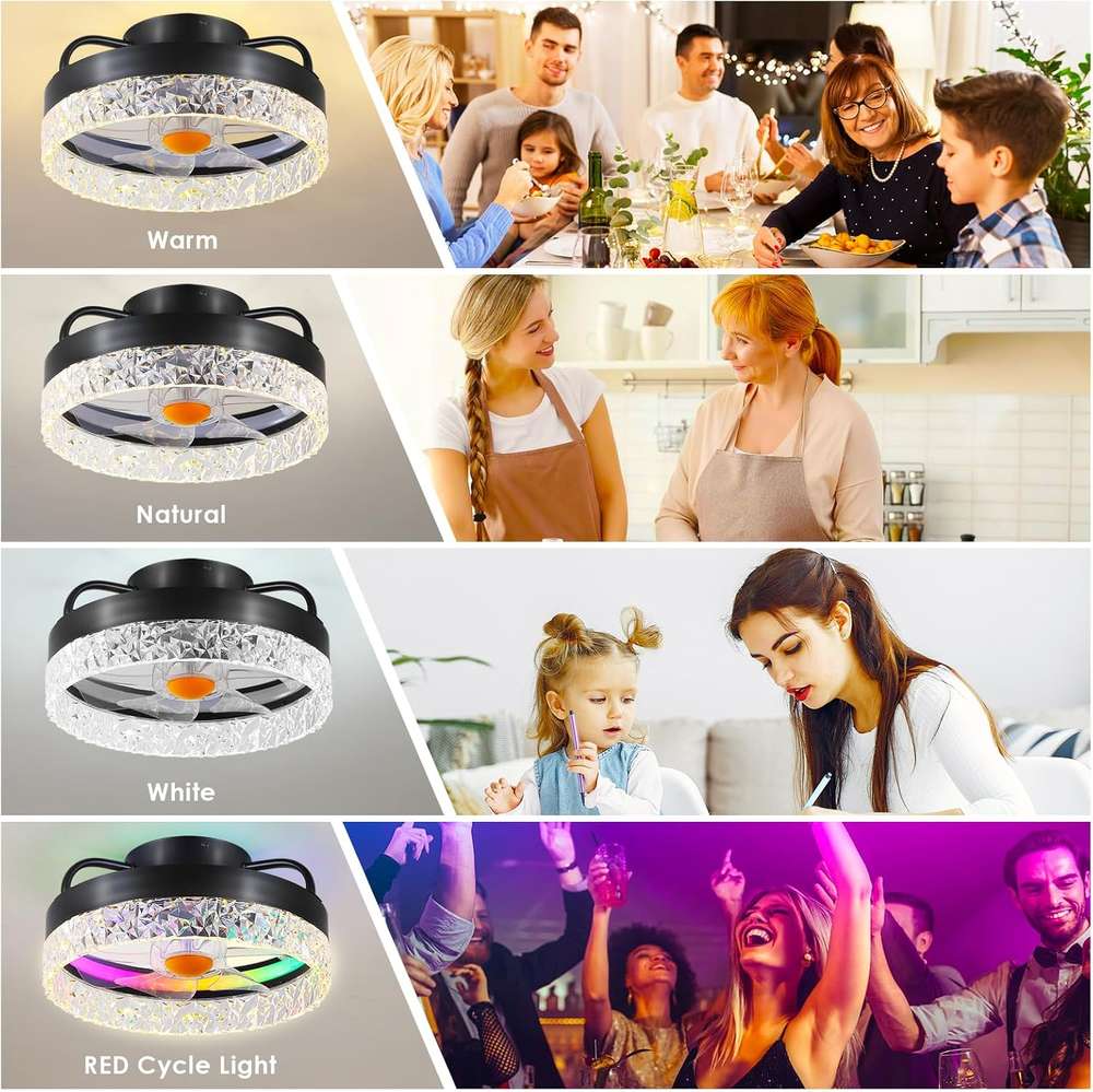 Compact & Stylish Design: This 13-inch flush mount ceiling fan is perfect for small spaces like bedrooms, kids’ rooms, or party areas. Its low-profile, modern design adds a sleek touch to any room while saving space, making it ideal for rooms with low ceilings.