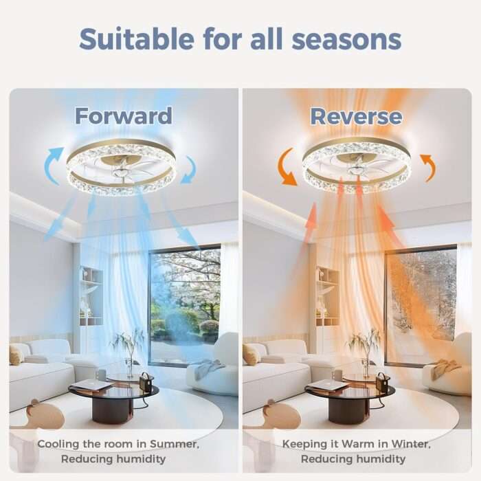 Remote Control & APP Control:All functions of Mcestna ceiling fans with lights and remote can be adjusted through remote control or APP. The new upgraded version with remote control can adjust brightness, color temperature, timing function, fan speed (6 levels), natural wind mode and reverse fan. The ceiling fans with lights also have a sleep timer setting, so you don’t need to wake up in the middle of the night and turn off the low profile ceiling fan with light