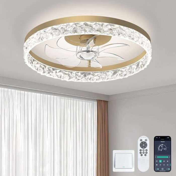 Be the first to review “Flush Mount Golden Ceiling Fans with Lights Low Profile and Remote 20 Inch Smart Modern Led Lights for Bedroom Kids Room Garage and Living Room”