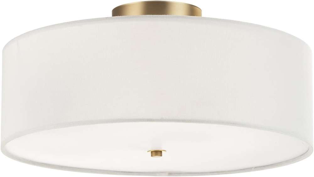 Ceiling lights can not only light up your whole room – they’re also a great way to show off your personal style. Utilizing a white fabric shade and a matte brass finish, the Kyle 2-Light Flush Mount Ceiling Light offers a traditional minimalist feel. The white linen shade complements with all decor styles while providing a warm even light. Ideal for a dining room, entryway or bedroom, this light will entice your senses as well as illuminate your home.