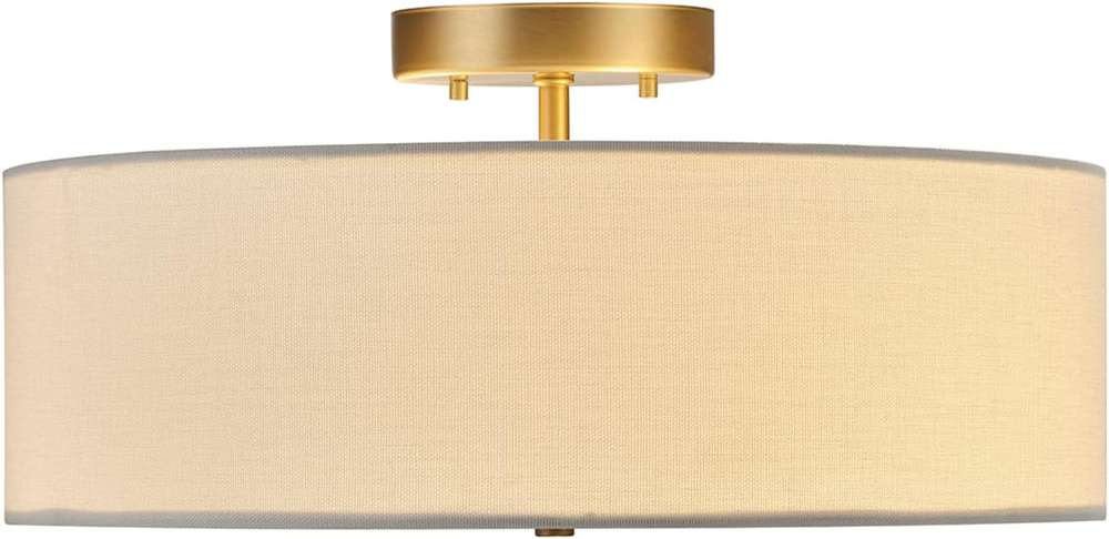 GLOBE Electric 60998 2-Light Flush Mount Ceiling Light, Matte Brass, White Linen Shade, Kitchen, Lights, Bathroom, Home Essentials, Bedroom, Closet Light, Lighting Fixtures, Dining Room