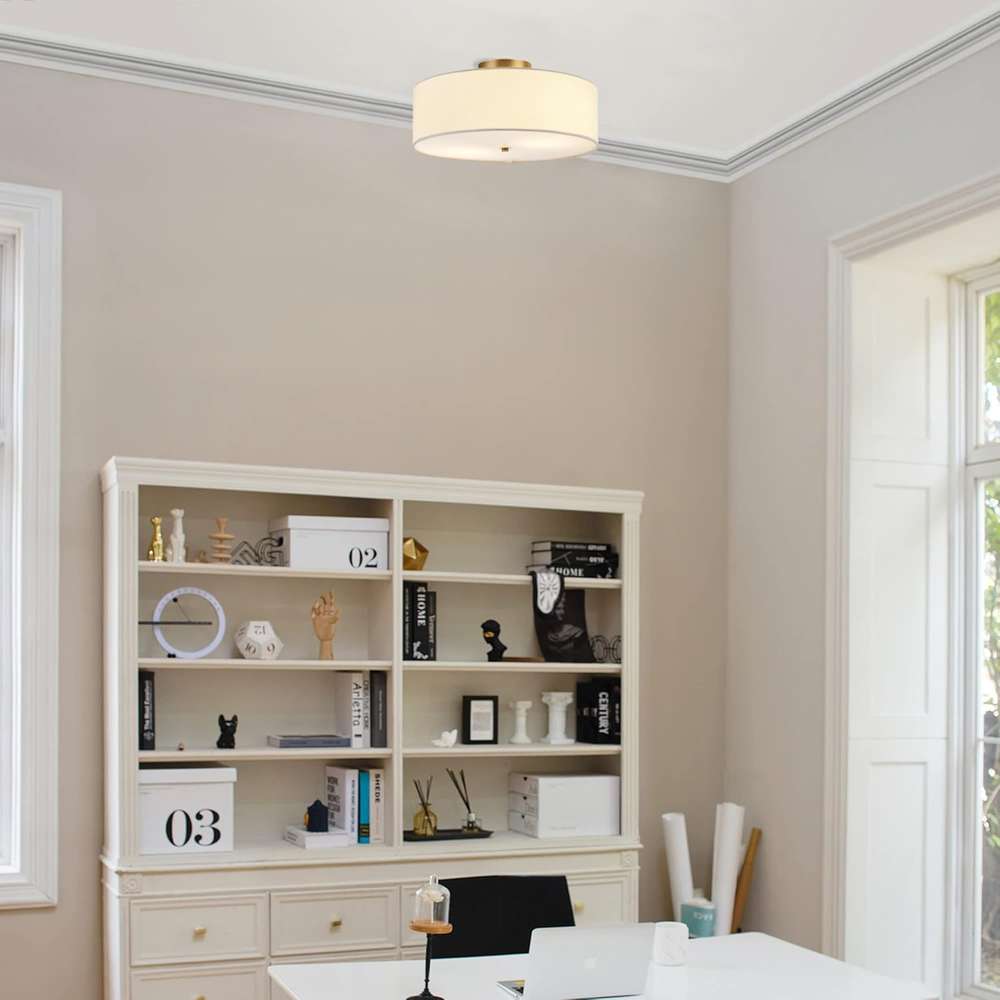 TRADITIONAL MINIMALIST: the classic round shape of the Kyle Flush Mount Ceiling Light combined with its minimalistic design and white fabric shade brings a traditional minimalist category to life