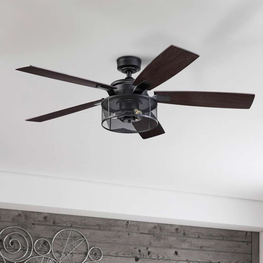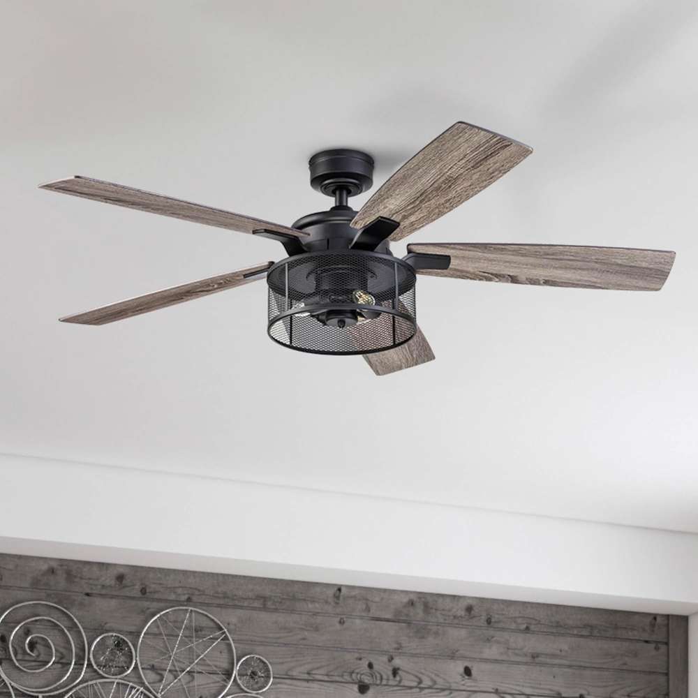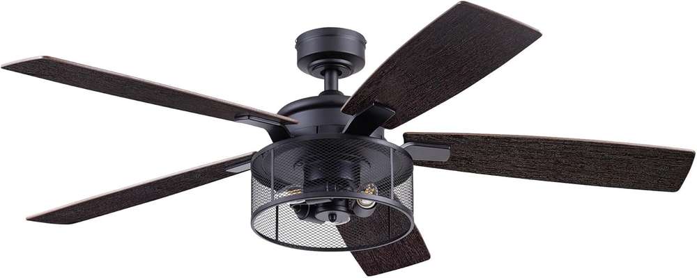 Honeywell ceiling fans make your home comfortable in summer (and winter) as well as help to reduce energy costs. Enjoy the welcome breeze in any room of your home while looking stylish. This industrial multi-position indoor ceiling fan combines stylish details of metal and wood for a truly inspiring fixture for your home. The Carnegie features a cage style, drum shaped shade and LED lighting. The innovative 5-blade design provides ultra-efficient, adjustable and energy efficient airflow while the LED lights provide ideal lighting to fit your mood. Control your Honeywell ceiling fan with a touch of a button with our easy-to-use universal ceiling fan remote control with wall mount option (batteries included). Enjoy year-round comfort by adjusting the reversible airflow switch that easily allows you to change the direction of the fan to properly distribute air. During hot summer months it will provide a cooling effect or when reversed, spreading warm air in the winter to help reduce energy costs. Specifications: Sizing: 52-in 5-blade indoor fan for rooms up to 400 sq. ft. Lighting: 3 x E26 / B10 Edison style light bulbs included that provide 450 lumens, 4.5 watts, 2700K color temperature, dimmable from 20% to 100%. About Honeywell Ceiling Fans Honeywell Ceiling Fans features a collection of fans in various sizes and specifications to ensure your choice of indoor or outdoor fan delivers optimum performance for your room’s size. You can trust the quality of Honeywell Ceiling Fans to deliver maximum airflow and a stylish lighting option. Honeywell Ceiling Fans use high-quality materials that are long lasting and durable with satisfaction guaranteed by manufacturer limited lifetime warranty.