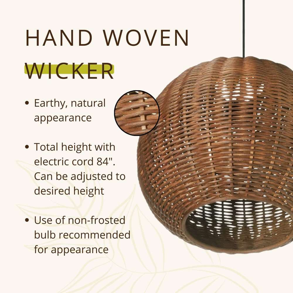 KOUBOO Wicker Ball Pendant Light, Rustic Brown