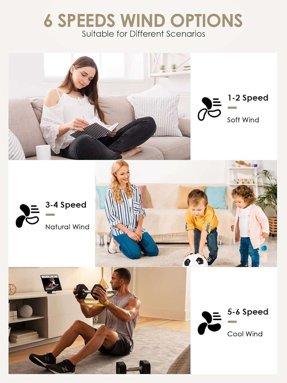 Reversible Motor and Quiet Fan – The reversible function offers two airflow modes, allowing for downdraft cool airflow during the summer and updraft airflow during the winter, rotating warm air and saving energy. The pure copper motor operates smoothly, delivering a strong yet quiet breeze that creates a comfortable living environment and promotes quality sleep.
