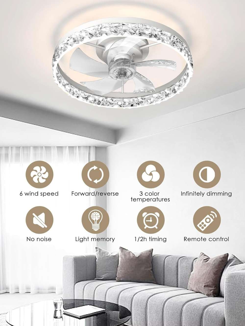 Low Profile Ceiling Fans with Lights and Remote, Stylish 19.7 inches Dimmable Flush Mount Ceiling Fan, Enhancing Room Decor, Stepless Color Temperature Change, and 6 Speeds – White