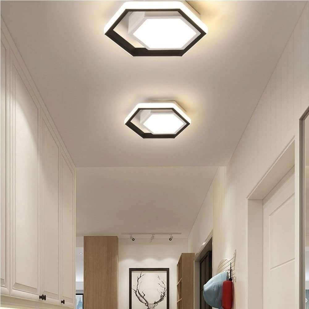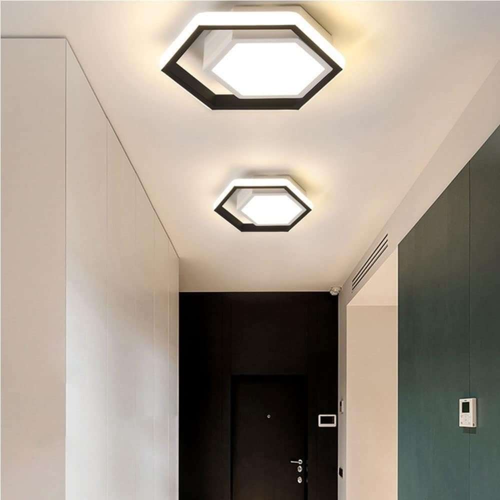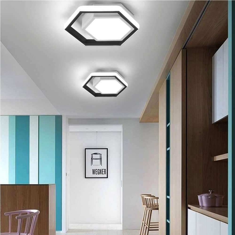 Modern Hexagonal Ceiling Light Design: Features a sleek black and white geometric shape for contemporary indoor ceiling lighting in corridors balcony cloakrooms aisles bedrooms study rooms and porches adding a stylish minimalist touch to your space