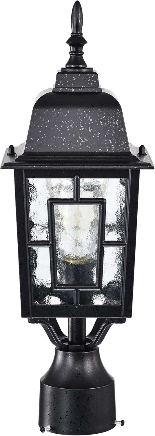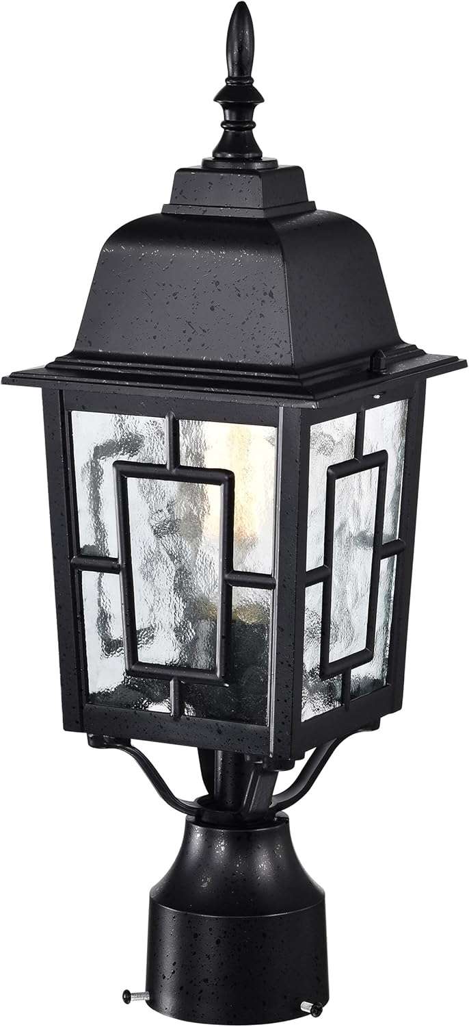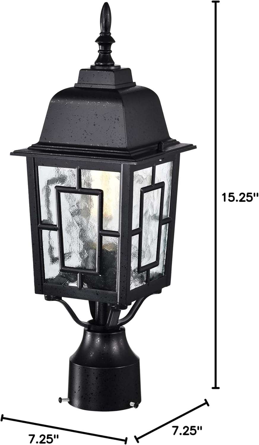 INCLUDES- (1) Black Aluminum Post Light Lantern Fixture with Glass (7.25 x 7.25 x 15.25 Inches) 100 Watts/120 Volts; post and bulbs not included