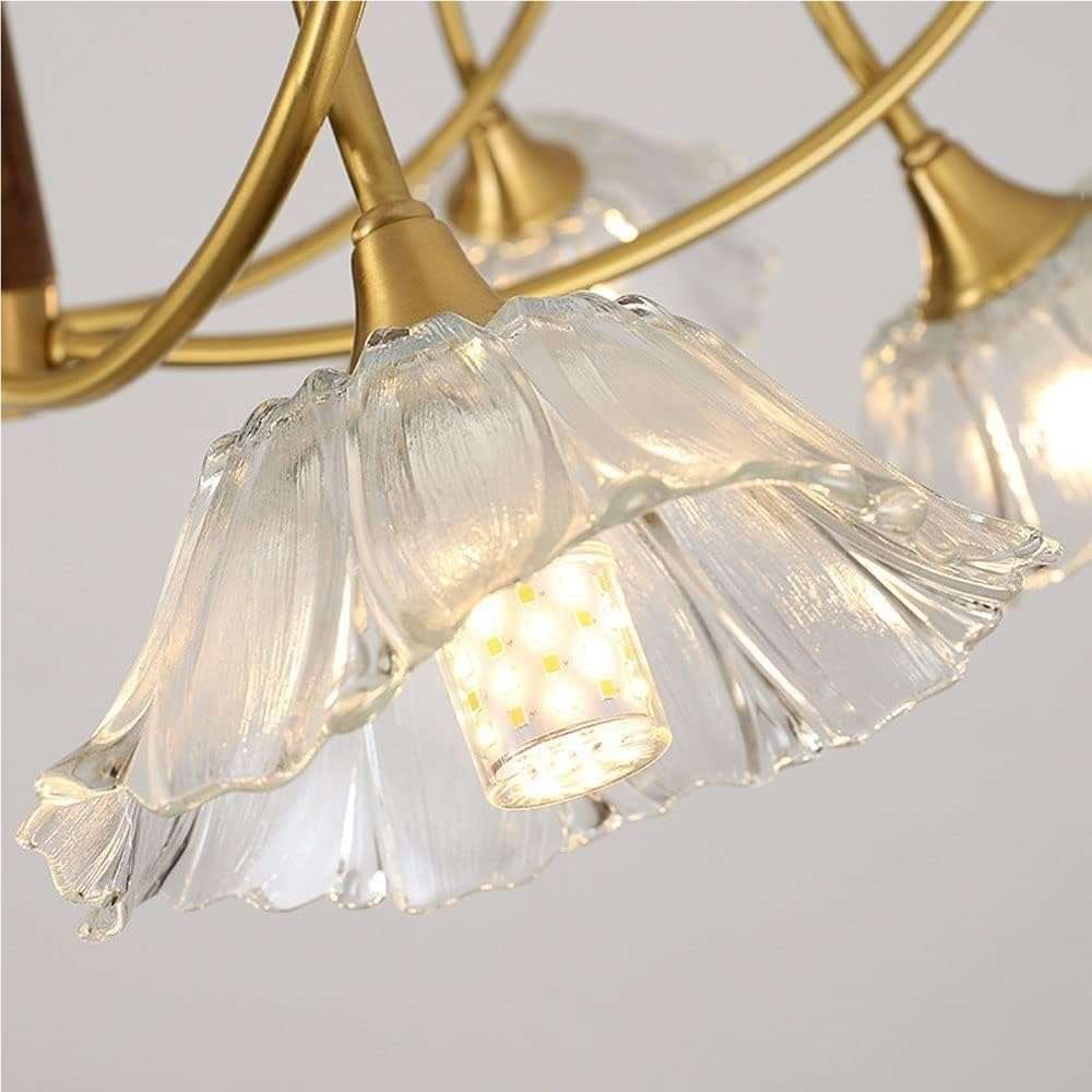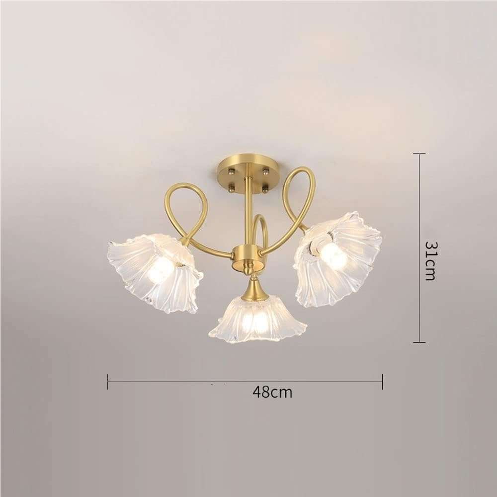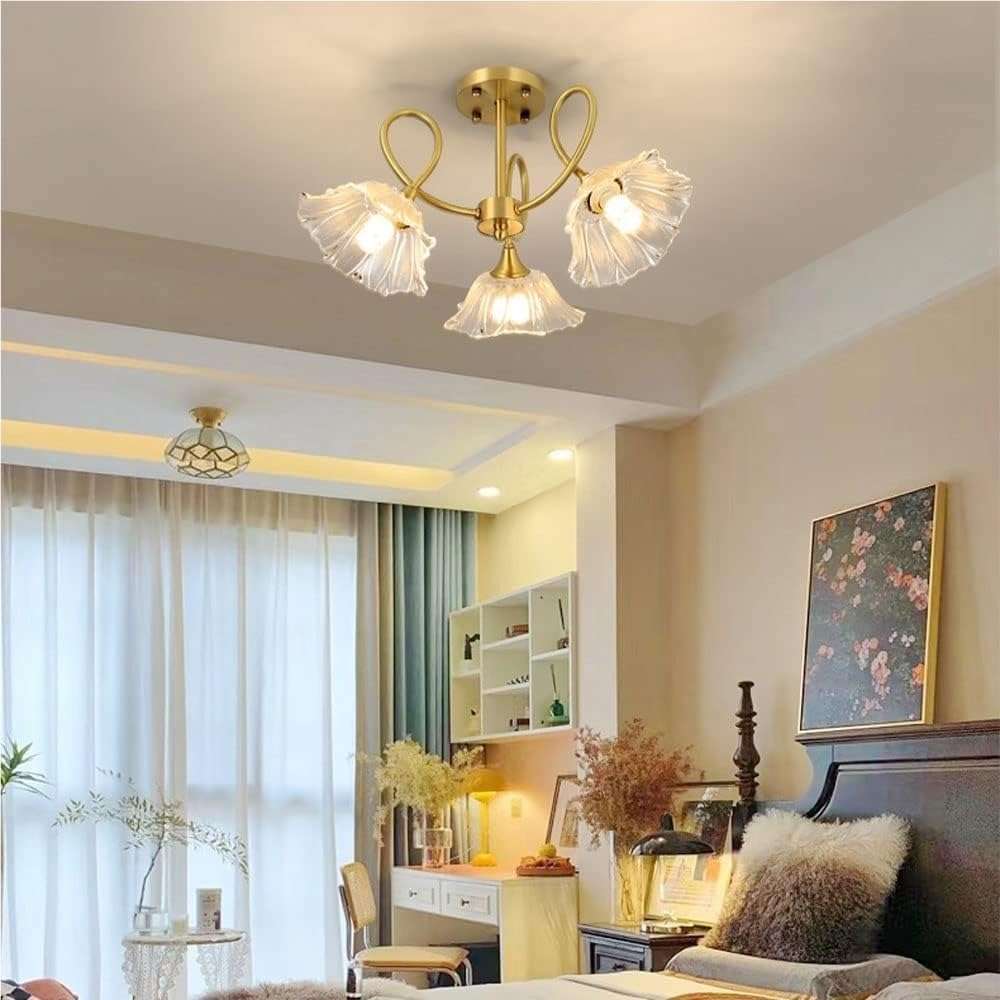 Elegant Floral Design: This rustic vintage 3 light brass flower ceiling light features a clear glass floral chandelier design that adds charm and character to any bedroom kitchen entryway or foyer lighting setup
