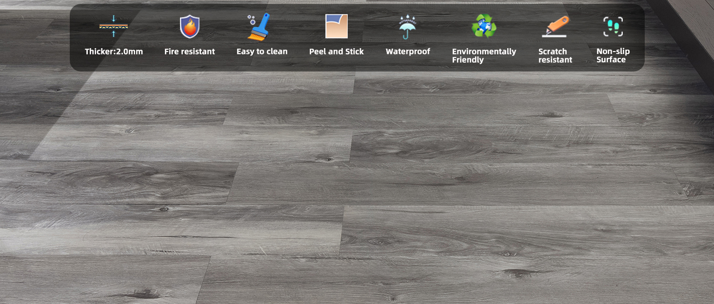 Ultra Strong Adhesive – We use premium adhesive and spray it over the entire vinyl flooring backing area. The more you walk on the floor, the stickier the adhesive becomes. The self-adhesive floor plank is suitable for smooth, flat, and dry floors, making it ideal for various indoor spaces such as kitchens, bathrooms, corridors, living rooms,office and bedroom
